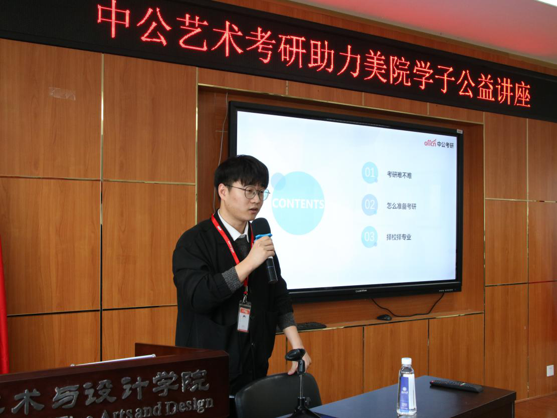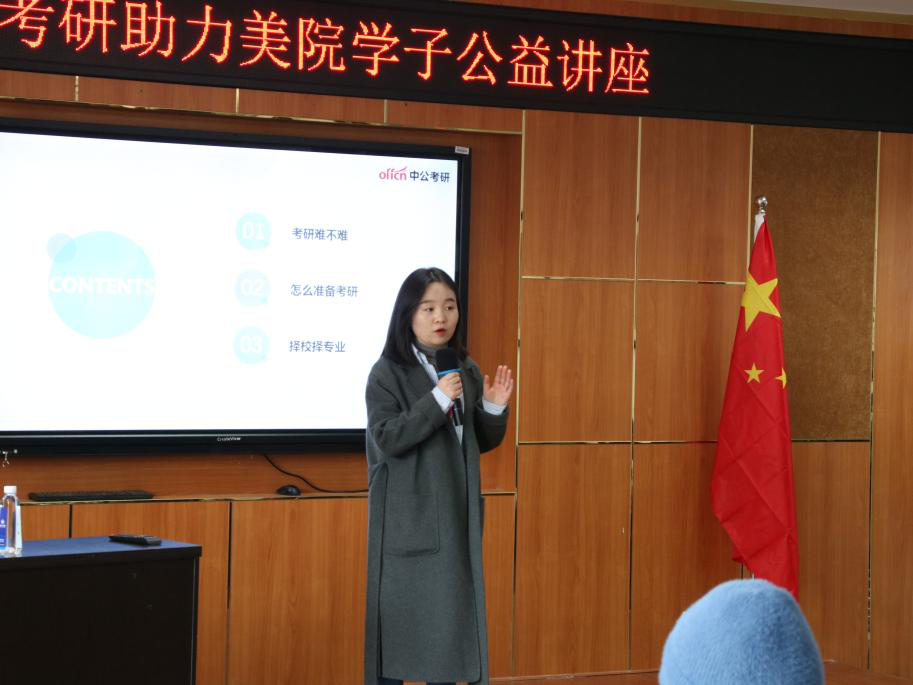 12月9日下午两点三十分许,“中公艺术考研”在漫画柜 举办针对2022年考研的备考指导公益讲座“艺术考研必须知道的事”。本次讲座的主要目的是给想要考研的同学答疑解惑,由中公艺术考研张文岐老师主讲。 讲座正式开始前,会场已经座无虚席,同学们十分热情,会场气氛高涨。在主持人简单的介绍后,中公考研的张文岐老师站上讲台,先对现场同学的专业进行提问,大致了解以后开始分专业精确指导。 老师把主讲内容分为三个主要方面:1.考研难不难。对于你想做的一件事首先要了解一下它的难易程度。2.考研需要做什么准备。考研有哪些常识,前期工作需要做哪些。3.择校择专业。考研先报志愿再考试,只能考一个学校一个专业,所以成绩和填报志愿的精准度都十分重要。 接着,老师分析了一下就业现状:很多大型互联网公司或者其他大厂对员工的招聘要求就是研究生及以上学历。所以要客观的看待考研这件事,而不是随着自己的主观意愿来决定自己要不要考研究生。大数据显示往届考生占比在一半左右,所以对于应届考生来说,压力是非常大的。并且还有很多名校推免考生,因此要想考研最好越早准备越好。考研的报录比大约在四比一左右,还是很高的录取比例,并且弃考率也很高,所以考研也没有大家想象的那么难。 考研需要考四门,外语和政治是全国统一,其他专业课是要学校自己出题。除了英语也可以考其他小语种,专业课一般是一门理论一门实操,需要画图。各个学校规定不一样,所以需要提前准备,并且根据自己的长处选择学校,发挥自己的长处。确定专业确定地区才能确定最终的院校,确定一个适合自己的学校是考研成功的关键。大家选择学校是可以根据学校所在的不同梯度及全国排名情况进行择优选择。 张文岐老师提醒道:在选择专业大类时,不一定要考艺术类,如果想做美术老师,也可以报考教育类。在报考时,要根据报考人数计划报录比,最终确定自己要报考的专业及院校。在查找考研所需要的资料时,最好在学校官网上查询相应文件,找到该学校考试所需资料,进行考试准备。张老师认为考研前不用联系导师,初试过了之后,可以确保进行该导师复试时,可以出于礼貌联系导师。 最后,张老师强调双非学校也是很好的考研对象,不一定非要报考重点院校。并且要尽早考试准备,尽可能延长自己的学习时间。 经过张老师两个多小时的讲授和与同学们的交流,本次中公考研公益讲座圆满结束。想必同学们都受益匪浅,对考研这件事也有了进一步的了解。会后张老师还进行了一对一的答疑环节,与同学们进行一对一的交流。 非常感谢张文岐老师的精彩演讲和耐心的答疑环节,同学们在这场讲座后一定也有了考研的目标和动力。 在这里祝愿即将考研的同学们旗开得胜,祝愿正在准备考研的同学们备考顺利!