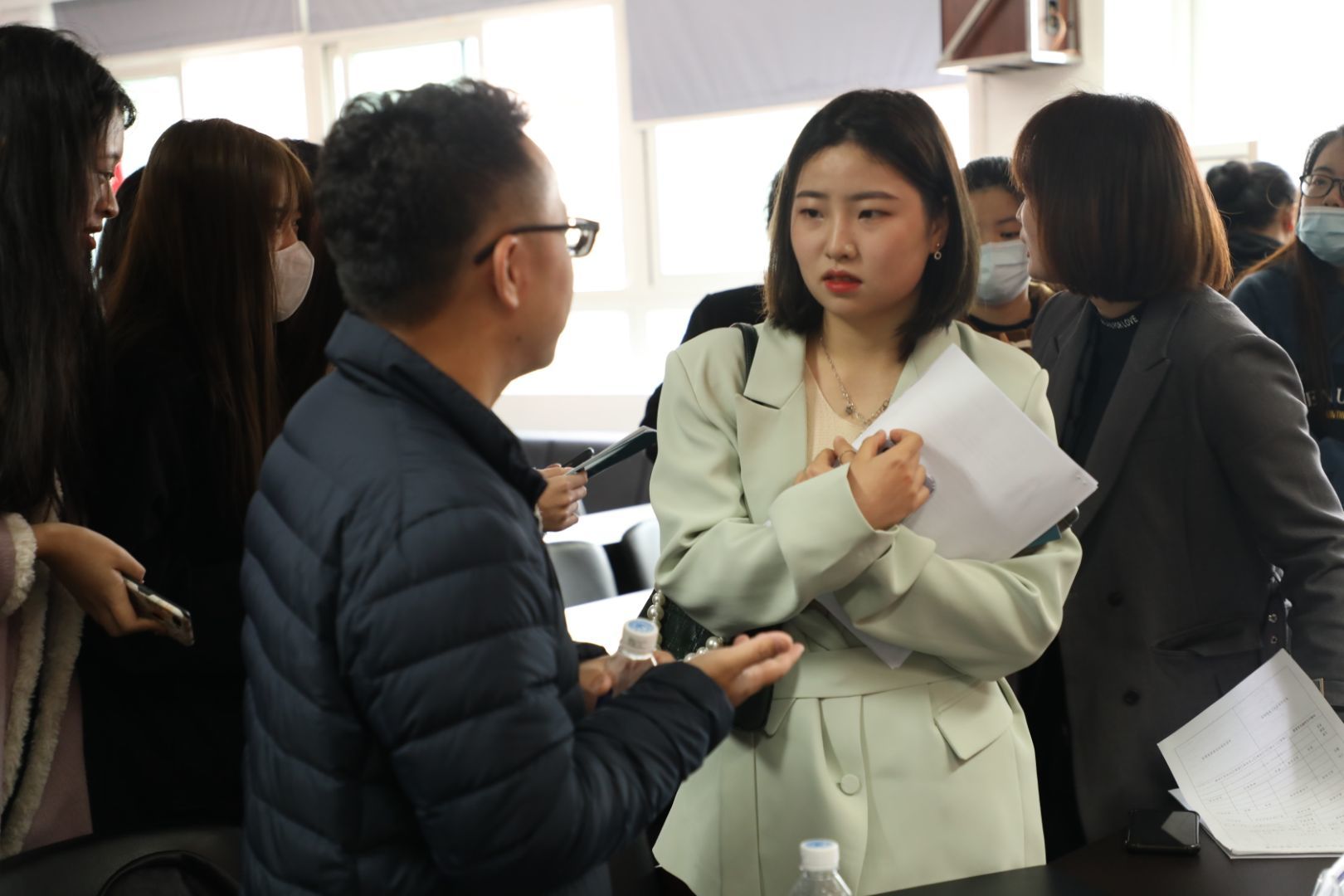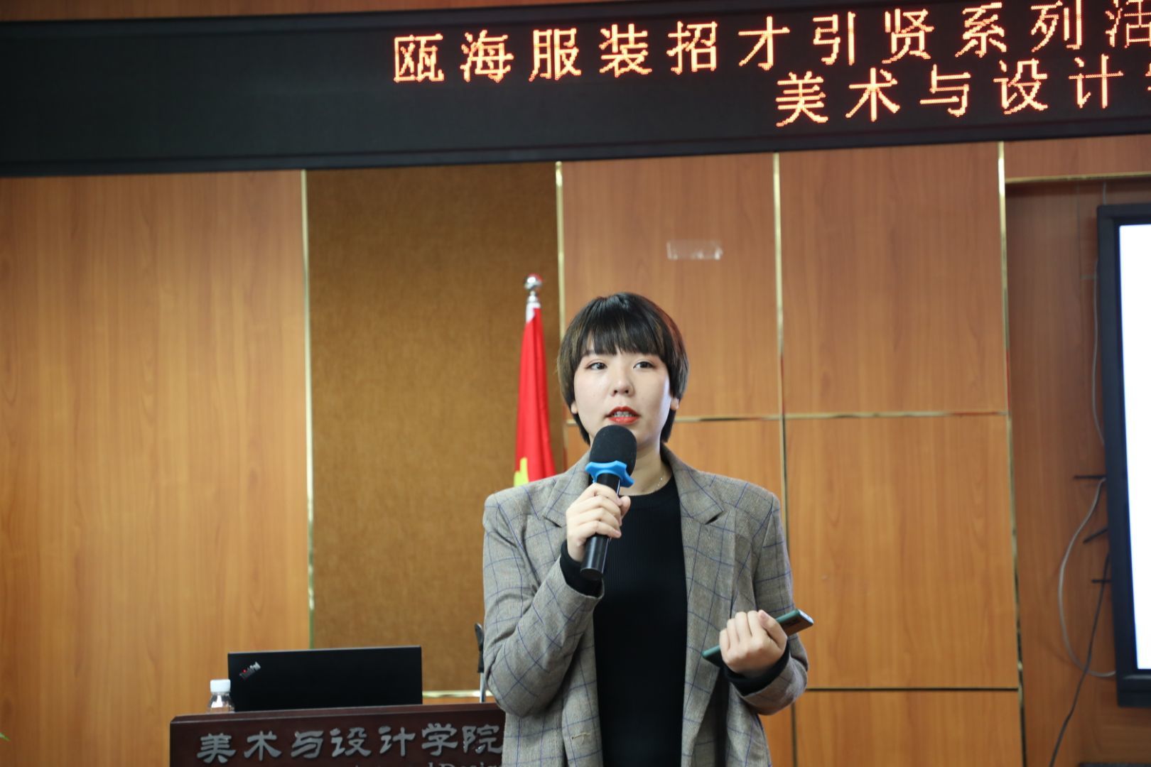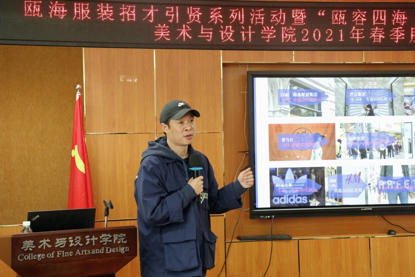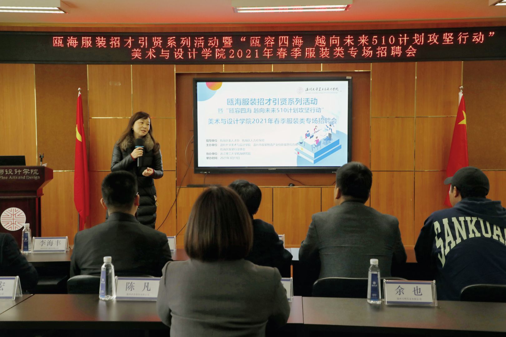 会议开始前,杨丽君副书记简要介绍了近几年漫画柜 的发展、人才培养以及毕业生就业的相关情况。随后,瓯海服装行业协会秘书长苏立玲对瓯海服饰产业的基本情况进行解读,浙江理工大学瓯海研究院副院长,温州市服装智造产业创新服务综合体负责人任力介绍了综合体的设计思想,从重点项目、功能分布、设计亮点三部分对每个楼层进行分析。在了解瓯海对于高校大学生留温政策之后,11家企业负责人通过介绍企业、岗位需求、待遇三方面来讲述,为此次参加招聘会的同学提供就业岗位的机会。