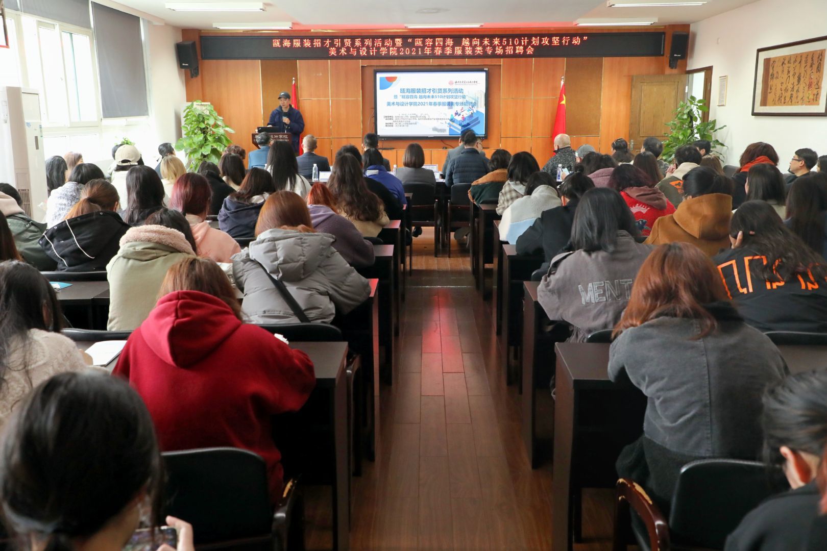 3月11日上午,在漫画柜 召开了瓯海服装招才引贤系列活动暨“瓯容四海越向未来510计划攻坚行动”漫画柜 2021年春季服装类专场招聘会。 此次招聘会由漫画柜 、温州市服装智造产业创新服务综合体、 瓯海区服装行业协会主办、由瓯海区委人才办 瓯海区人力社保局负责指导。 参加此次会议的嘉宾有漫画柜 党委书记叶正飞、温州市服装智造产业创新服务综合体负责人任力、瓯海服装行业协会秘书长苏立玲、漫画柜 党委副书记杨丽君、学院副院长顾任飞、以及11家在瓯海区优秀的服装企业负责人,近70位毕业生参加。 会议开始前,杨丽君副书记简要介绍了近几年漫画柜 的发展、人才培养以及毕业生就业的相关情况。随后,瓯海服装行业协会秘书长苏立玲对瓯海服饰产业的基本情况进行解读,浙江理工大学瓯海研究院副院长,温州市服装智造产业创新服务综合体负责人任力介绍了综合体的设计思想,从重点项目、功能分布、设计亮点三部分对每个楼层进行分析。在了解瓯海对于高校大学生留温政策之后,11家企业负责人通过介绍企业、岗位需求、待遇三方面来讲述,为此次参加招聘会的同学提供就业岗位的机会。 招聘会在热烈的掌声中圆满结束。就业是每个大学生都要跨过的一道门槛,是人生的重要转折点。万丈高楼平地起,将就业看作是展示自己的平台,充分发挥自己的才干,让梦腾飞。
