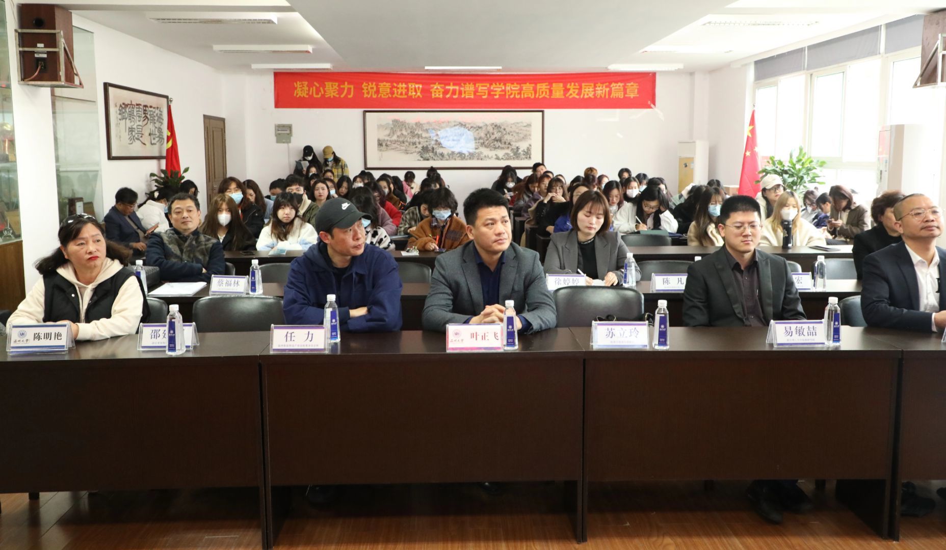 参加此次会议的嘉宾有漫画柜 党委书记叶正飞、温州市服装智造产业创新服务综合体负责人任力、瓯海服装行业协会秘书长苏立玲、漫画柜 党委副书记杨丽君、学院副院长顾任飞、以及11家在瓯海区优秀的服装企业负责人,近70位毕业生参加。