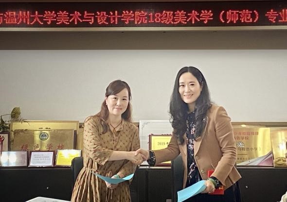 最后,马鞍池小学沈捷校长与漫画柜 杨丽君副书记签署了实习基地协议书。通过实习实践教学平台的共享,促进两校在教育教学、人才培养、文化交流等方面得以深度发展。