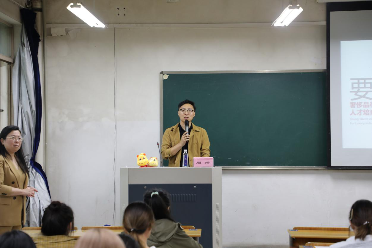 2021年5月19日下午两点时许,“奢侈品专家带你探秘奢侈品行业,奢侈品公司就业实习见面会”在学院南3C116举行,隆重邀请到高端消费品研究专家、多所高校客座教授、中国第一个奢侈品研究中心创立者周婷博士,学院学工办主任杨鹏老师隆重介绍了周博士,介绍后活动正式开始,现场服设、视传、环艺等大三、大四近百同学参加。