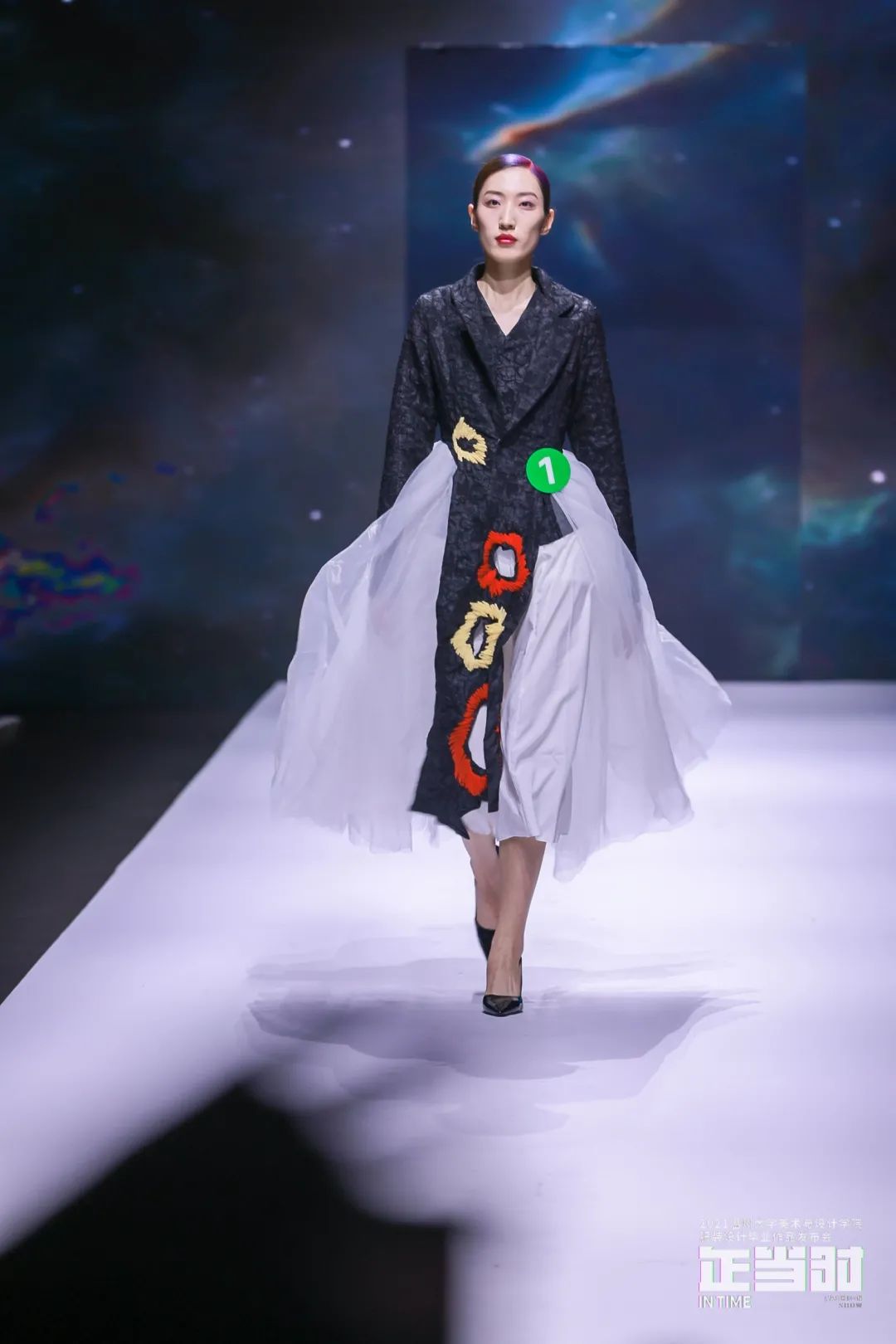 4月30日晚上,2021届漫画柜 服装设计毕业作品发布会在漫画柜 南校区体育馆三楼隆重举行。来自服装与服饰设计专业的28名年轻设计师以108套精心创设的作品,展示他们在服装艺术道路上四年孜孜以求的成果,表达他们对于服饰的独特见解和对时尚的钟情热爱,并在T台上决出最后的桂冠。
