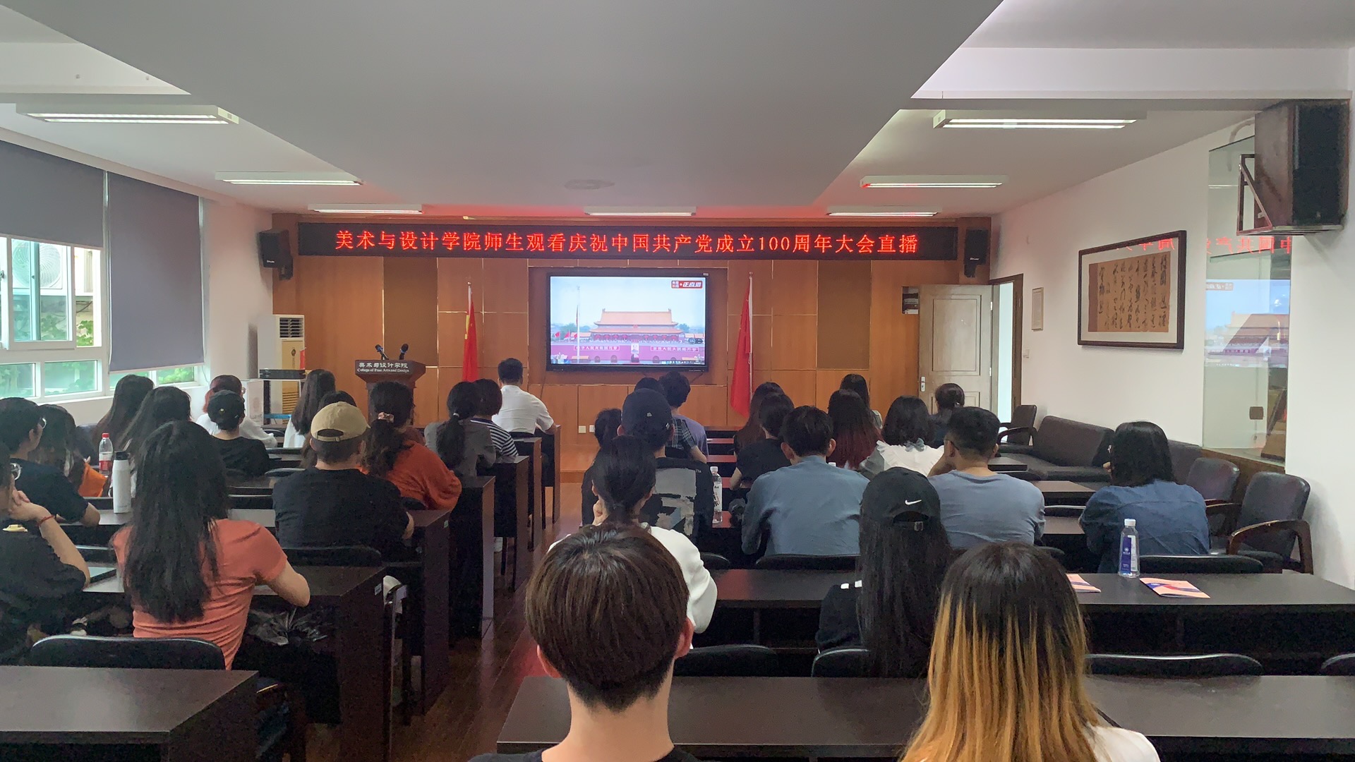 7月1日上午,庆祝中国共产党成立100周年大会在北京天安门广场隆重举行,漫画柜 师生高度关注。上午8点,学院采用集中观看和个人观看相结合的方式组织师生收看,共同回顾党的百年历程,见证党的百年辉煌。习近平总书记的重要讲话在美院师生中引发热烈反响。大会结束后,大家纷纷表示,通过收看大会直播,真正在思想上接受了一次深刻洗礼,今后要坚定信念、拼搏奉献,用不懈奋斗书写人生华章,争做新时代中国特色社会主义事业的奋斗者和建设者!