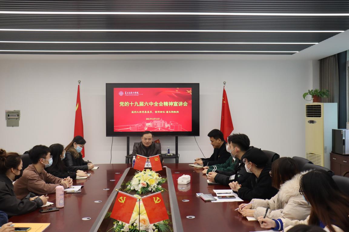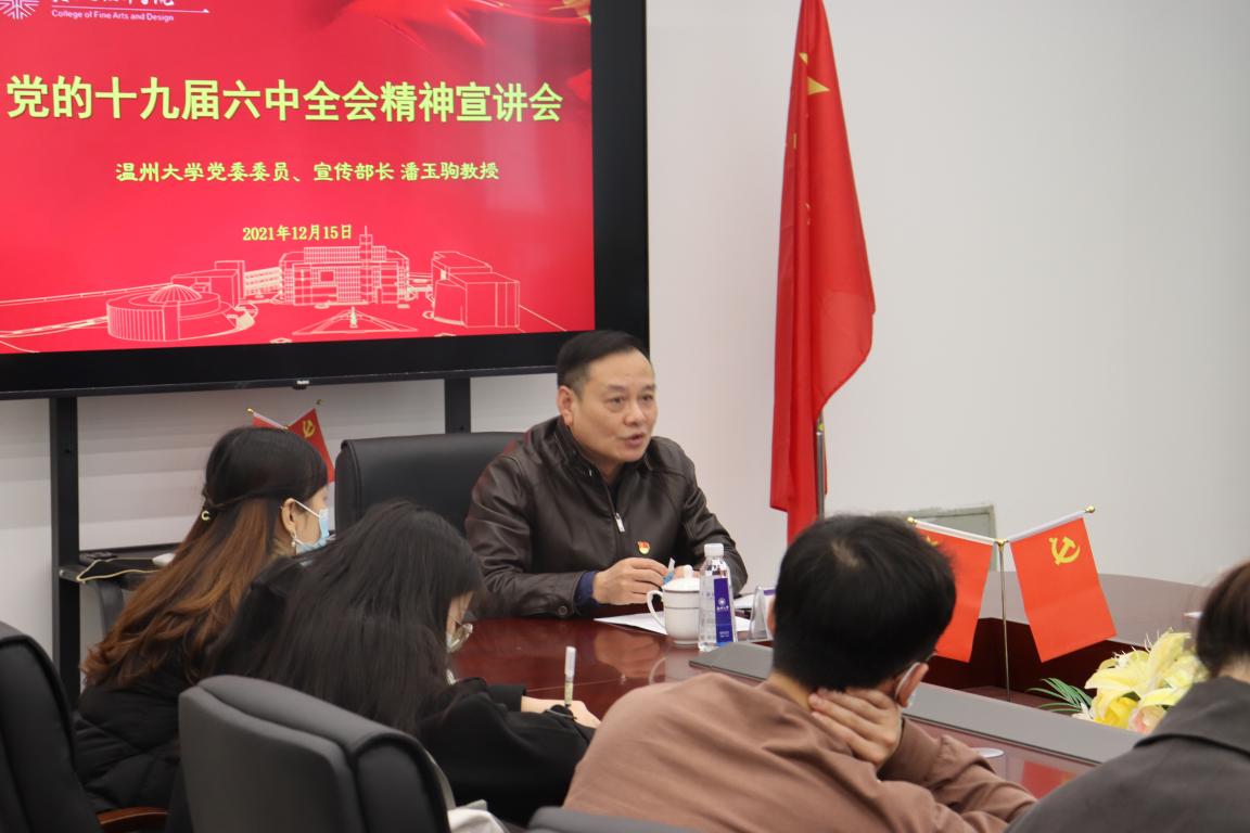 为深入学习贯彻党的十九届六中全会精神,深入领会全会精神内涵,12月15日下午,漫画柜 党委委员、宣传部部长潘玉驹教授进行了学习贯彻党的十九届六中全会精神宣讲。宣讲会由美术学院党委书记叶正飞主持,师生代表参加。