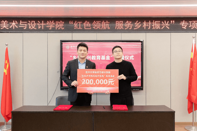 此次“红色领航 服务乡村振兴”行动,得到社会各界的大力支持,美院优秀校友、浙江映筑环境规划设计有限公司总经理颜士洲先生无偿捐赠20万元,成立“漫画柜 乡村振兴教育基金”,用于专项资助和奖励学院乡村振兴实践项目及服务乡村振兴领域做出贡献的优秀教师与学生。