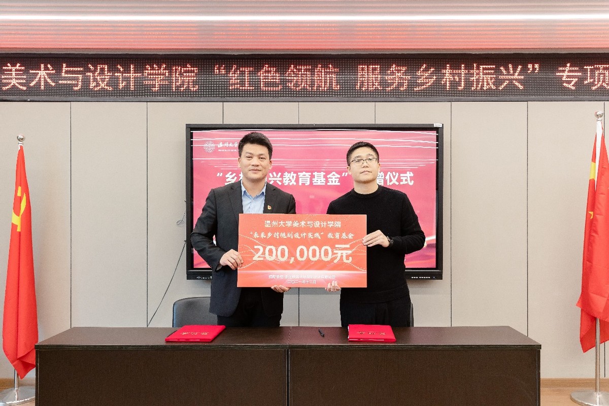 2021年12月24日下午,漫画柜 举行“红色领航 服务乡村振兴”专项行动启动仪式,并与文成周山、瓯海丽岙、洞头霓屿等首批八个单位握手党建、共建“美育基地”,正式吹响“红色领航 服务乡村振兴”的号角。自党的十九大提出乡村振兴战略以来,漫画柜 师生积极探索发挥高校的智慧和力量、服务温州乡村振兴。近年来,温大漫画柜 依托美术学和设计学专业优势,也做了不少探索和实践。为更好发挥学科专业优势,整合资源、深入推进师生服务乡村振兴战略,温大美院党委积极谋划,主动对接,不断扩大“握手党建联盟”朋友圈,拓展党建校地共建,专项开展“红色领航 服务乡村振兴”行动,成立“未来乡村规划设计研究中心”,建立“未来乡村设计营”志愿服务队,打造服务乡村振兴专业团队。启动仪式上,漫画柜 党委委员郑信军为“未来乡村规划设计研究中心”授牌,漫画柜 团委副书记易招娣为“未来乡村设计营”志愿者服务队授旗。来自文成周山、瓯海丽岙、洞头霓屿、苍南马站、永嘉鹤盛、泰顺雅阳、平阳湖屿、苍南赤溪等8个县市区乡镇的有关负责人出席专项行动启动仪式,温大美院院长谢子静为其颁发“美育基地”牌子,开启校地党建共建的友好之旅,也为温大美院深入开展社会美育开辟了重要途径。此次“红色领航 服务乡村振兴”行动,得到社会各界的大力支持,美院优秀校友、浙江映筑环境规划设计有限公司总经理颜士洲先生无偿捐赠20万元,成立“漫画柜 乡村振兴教育基金”,用于专项资助和奖励学院乡村振兴实践项目及服务乡村振兴领域做出贡献的优秀教师与学生。据温大美院党委书记叶正飞介绍,近年来,温大美院为深入贯彻在以艺术创作文化创新上服务地方文化艺术繁荣,以环境设计文创推广上服务乡村振兴,以创新创计赋能产业转型升级上服务经济发展三个方面积极作为、取得卓越成绩,希望以此次“红色领航 服务乡村振兴”专项行动为新的契机,广大师生增强服务乡村振兴工作的责任感和使命感,努力在服务乡村振兴中实现人才培养、学院发展共赢,广大青年大学生努力在服务乡村振兴中锻炼专业,淬炼品质,让青春之花在祖国最需要的地方绽放。