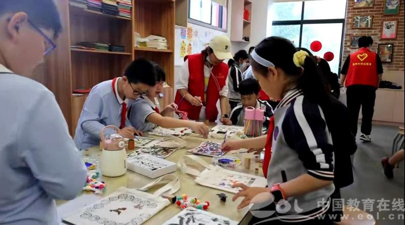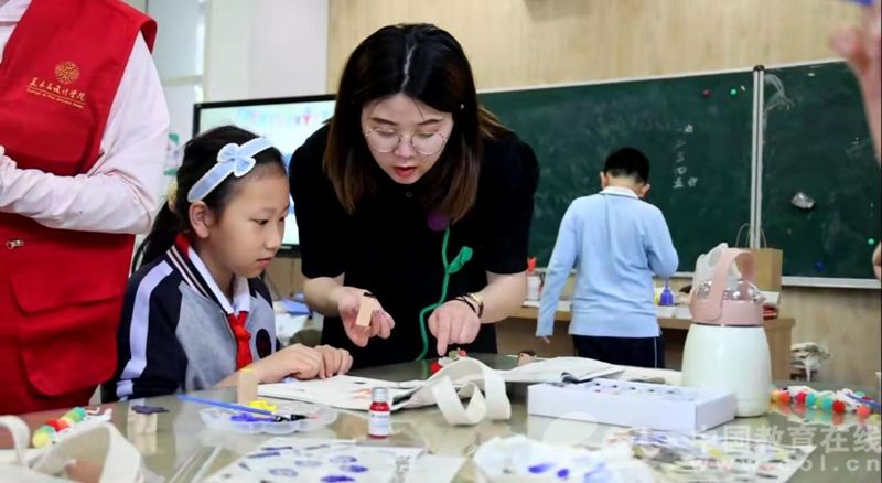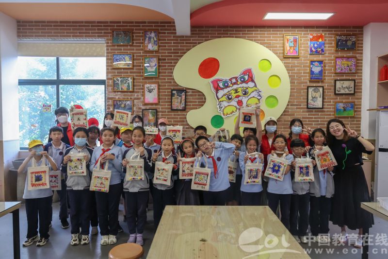 中国教育在线浙江站讯(记者 白菁洁)生动活泼的鹿形图案、各式各样的模戳印染、颜色跳脱的手工装饰......5月27日下午,在童画美育课堂上,漫画柜 的党员志愿者们带领漫画柜 城附属学校的小朋友们定制专属帆布包,提前过儿童节。