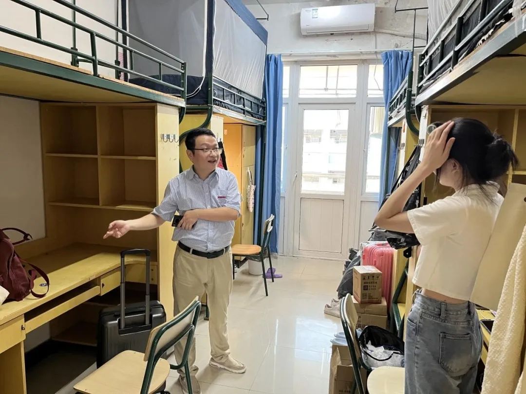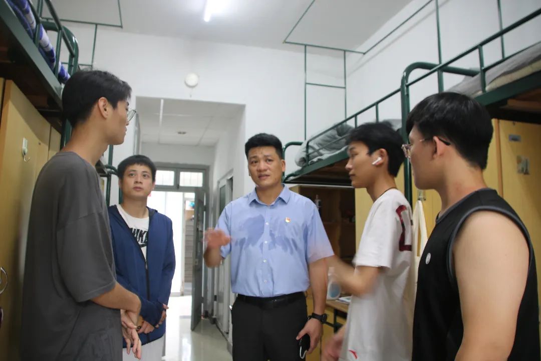 下午,校党委委员、组织部长郑信军带领学院的全体领导、新生班主任老师纷纷走访新生寝室。老师们亲切地与新同学们交谈,询问大家来自哪里,生活是否习惯、对新环境是否适应等。新生们也对老师们的到来表示热烈地欢迎,师生之间洋溢着温馨的氛围。