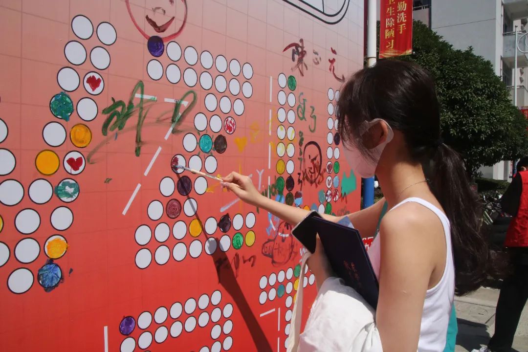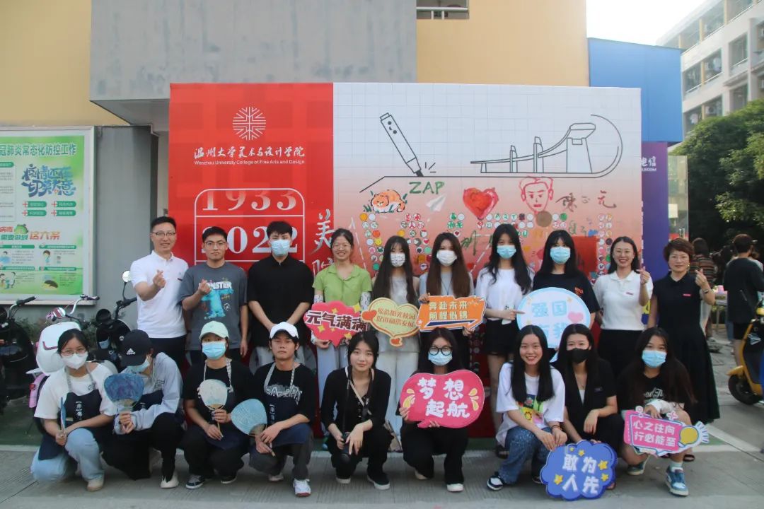 学院还开展了新生迎新现场“手绘祝福”的活动。恰逢2023年是温大校庆90周年,版面中的“wzu art”由圆圈构成,新生们在办理报道后,会在圈内进行绘画,代表着我们温大美院新生报到的活力入驻!90数字结合了飞机的造型,祝福着我们温大可以高飞致远,也祝福着我们温大的莘莘学子能够前程似锦、勇往直前 !