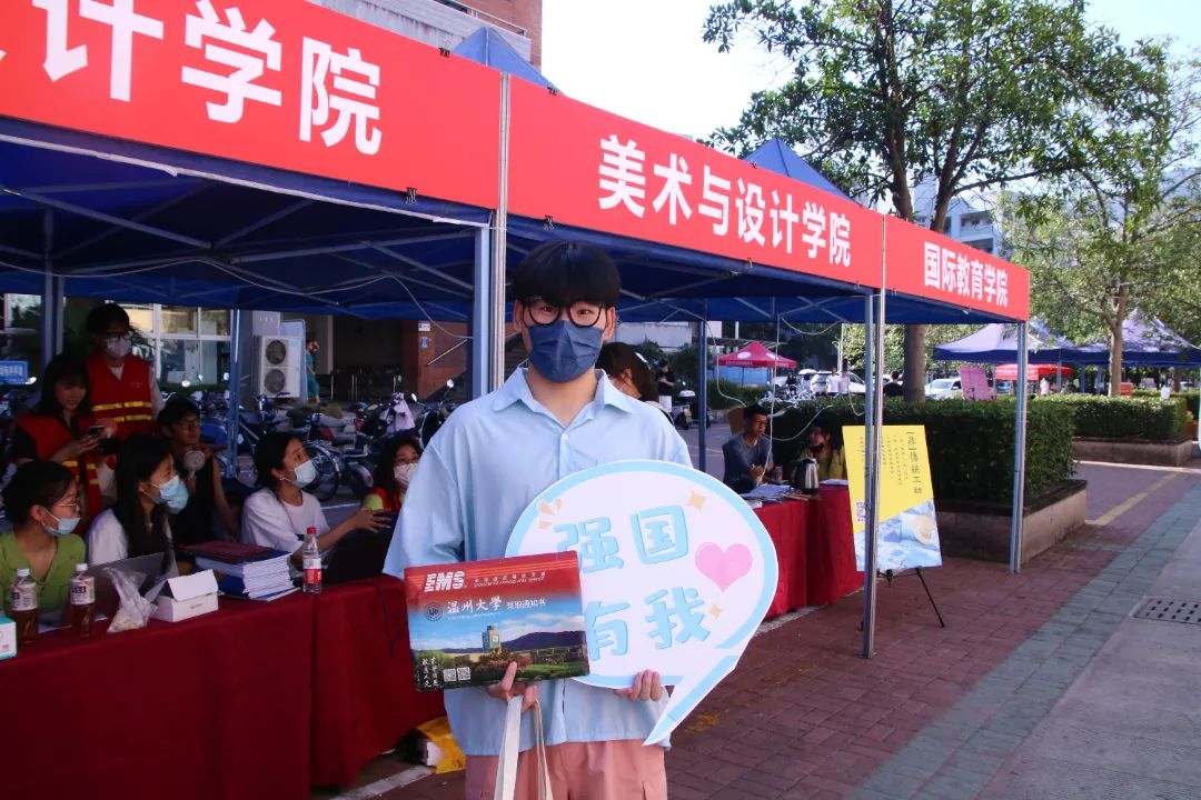 迎新现场热火朝天,22级萌新“驾”到,炎热的天气,让迎新的热度高涨。远途纷至沓来的新生们来到报到处,热情的志愿者们回答着学弟学妹们的疑问,认真核查着疫情防控相关材料。看着一张张新面孔,迎新志愿者们脸上洋溢着温暖的笑容,欢迎最亲爱的学弟学妹的到来,欢迎他们来到温大美院的怀抱。一、缘起 新生报到迎新现场热火朝天的进行着,虽然天气还有些许的炎热,但是新生与志愿者们的情绪依然高涨。志愿者热情的回答着学弟学妹们的疑问,认真核查疫情防控相关材料。看着一张张好奇的脸庞,志愿者队伍们也想起了自己当初开学的模样,虽然迎新工作有着些许的忙碌,但是大家的脸上都带着温暖的笑容,希望可以给予初入大学的新生们一丝力量,欢迎他们来到我们温大美院的怀抱。学院还开展了新生迎新现场“手绘祝福”的活动。恰逢2023年是温大校庆90周年,版面中的“wzu art”由圆圈构成,新生们在办理报道后,会在圈内进行绘画,代表着我们温大美院新生报到的活力入驻!90数字结合了飞机的造型,祝福着我们温大可以高飞致远,也祝福着我们温大的莘莘学子能够前程似锦、勇往直前 !在报到处,学院邀请了“非传统工坊”,结合学院的专业特色,带领新生体验非遗传统蓝染文化。以扇子为载体,让非遗走出传统,走进学生生活,融入艺术的时尚气息,唤醒传统的记忆,再现流行的魅力!希望新生可以在体会非遗文化美丽的同时,也感受到我们美院特有的美育气息。红马甲的身影在人群中穿梭,时刻准备着伸出援手,志愿者为新生们提行李、带路,帮助他们解答疑问。由于疫情的原因,家长无法入校,但是志愿者们辛勤的身影,想必也会给新生们带来一丝温暖,也在踏入大学的新生活中留下浓墨重彩的一笔。二、缘惜 校领导关心慰问报到现场今日,校党委书记谢树华,校党委委员、组织部长郑信军等领导也先后来到了迎新报到处慰问和指导工作。表示新生能在这一特殊时间节点可以体验非遗蓝染,这对新生以后的专业兴趣、专业认知以及投身学业会起到重要作用,也对美院志愿者们的热情与服务表示高度肯定!三、缘聚 校领导、院领导、老师下寝送温暖下午,校党委委员、组织部长郑信军带领学院的全体领导、新生班主任老师纷纷走访新生寝室。老师们亲切地与新同学们交谈,询问大家来自哪里,生活是否习惯、对新环境是否适应等。新生们也对老师们的到来表示热烈地欢迎,师生之间洋溢着温馨的氛围。四、缘定穿过清晰的黎明和蓝色的白天,美院学子共赴山海之约。希望2022级的小萌新们可以牢记“求学问是,敢为人先”的校训,坚定理想、勇担使命、志存高远,大学开启了人生的新篇章,也祝愿你们可以在温大美院艺梦为马,不负韶华!