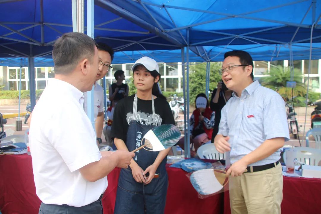 今日,校党委书记谢树华,校党委委员、组织部长郑信军等领导也先后来到了迎新报到处慰问和指导工作。表示新生能在这一特殊时间节点可以体验非遗蓝染,这对新生以后的专业兴趣、专业认知以及投身学业会起到重要作用,也对美院志愿者们的热情与服务表示高度肯定!