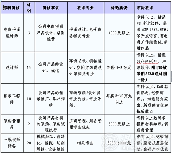 公司简介 山东兄弟商业设施有限公司坐落于五岳独尊的泰山脚下,是国内最早从事商业配套设施生产及卖场形象策划、设计的大型专业厂家,企业以总公司和下设分公司(厂)的集团化模式运营,目前已建设三个厂区,下设:齐鲁兄弟、优仕佳、兄弟佳美著名品牌,年生产总值超亿元。 企业始终坚持奉行“服务精益求精,合作真诚永远”的服务理念,秉承“以专业求生存,以质量谋发展”的经营理念,进行了规范化、系统化、创新化管理,先后通过ISO9001国际质量管理体系认证,荣获“全国质量诚信3A企业”、“中国连锁经营协会理事单位”、“全国工商联烘焙业公会理事”等荣誉。公司网址:www.sd-xd.net 招聘岗位企业以“诚信、责任、合作”的人才观念,为有志之士提供广阔的发展空间及晋升平台。因发展需要,现诚聘以下岗位人员 。 待遇 1、完善的带薪培训:新员工入职培训、销售经理带训、培训公司提供的在职培训等; 2、优厚的福利待遇:提供住宿、交纳五险、提供班车接送、补贴、节假日福利等; 3、广阔的发展空间:公司将为新员工提供广阔的发展平台,及完善的晋升体系。应聘流程 1、欢迎应/往届毕业生通过齐鲁人才网(www.qlrc.com)、中国家具招聘(www.jjrw.com)投递简历或简历命名为“岗位+学校+专业+姓名”投递到指定的电子邮箱:[email protected]。 2、参加公司组织的校园宣讲招聘会,现场收集应聘简历。 3、请接到面试通知的同学携带个人简历、就业推荐表、成绩单(院校盖章)、身份证、学生证及其他相关资格证书的原件及复印件用于审核、参加面试。 4、拟录用候选人资料审核及录用审批签订、签订《签约承诺书》 《就业协议书》 5、新员工报到、入职体检、入职手续办理及培训 联系人:傅老师 联系电话:15610709181 0538-8363966 公司网址:www.sd-xd.net 公司地址:山东省泰安市青春创业园晶华路,市内乘坐K6/K25路公交车。