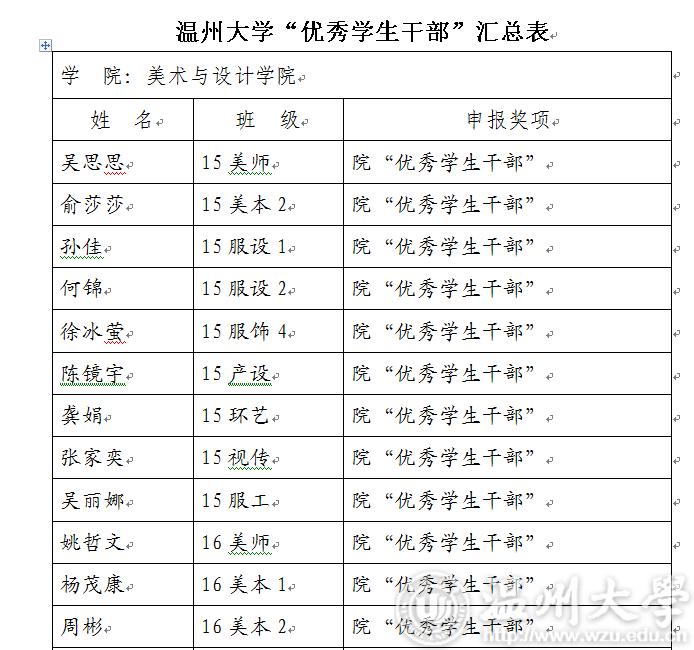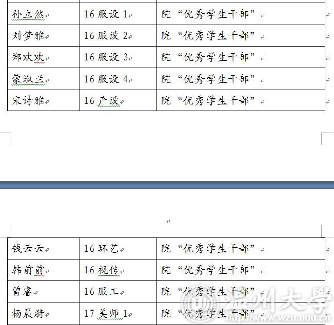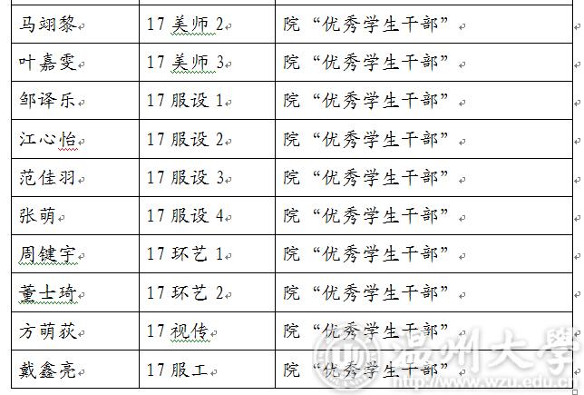 2017-2018学年第二学期漫画柜 “优秀学生干部”“工作及积极分子”名单
