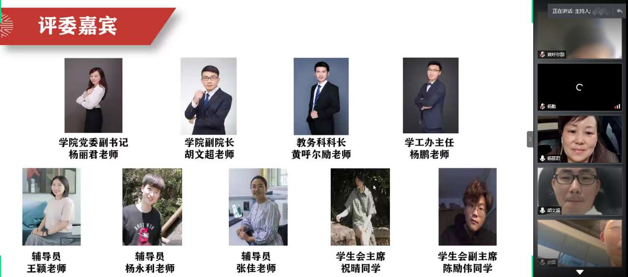 为推动学院学风建设,培养良好的院风学风,2020年6月3日晚上,漫画柜 学风建设推进会暨2019-2020学年五班十星评选活动在线上成功举行。本次活动面向全体美院学子,本次评选的评委有漫画柜 党委副书记杨丽君老师、副院长胡文超老师、教务科科长黄呼尔励老师、学工办主任杨鹏老师、辅导员杨永利老师、辅导员张佳老师,以及学生会主席祝晴同学、学生会副主席陈励伟同学。