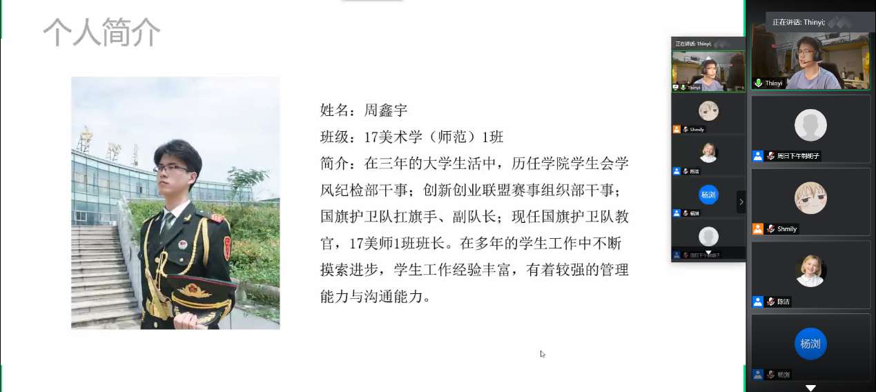 为推动学院学风建设,培养良好的院风学风,2020年6月3日晚上,漫画柜 学风建设推进会暨2019-2020学年五班十星评选活动在线上成功举行。本次活动面向全体美院学子,本次评选的评委有漫画柜 党委副书记杨丽君老师、副院长胡文超老师、教务科科长黄呼尔励老师、学工办主任杨鹏老师、辅导员杨永利老师、辅导员张佳老师,以及学生会主席祝晴同学、学生会副主席陈励伟同学。 评选活动伊始由主持人简单介绍评比规则,首先进行的是“五班”的评选。本次评选共有11个班级申报4项荣誉,各班级向大家展现了党建风采、学风建设、道德品质、科技创新等方方面面丰富多彩的班级风貌,彰显了美院班级蓬勃向上的积极学风。 在之后的“十星”评选中,共有18位学子申报8项荣誉。参赛选手的个人特殊都非常突出,从公益、科研、学习、体育、管理等方面展示了美院学子们全面发展的特质,也体现出美院学子学习成长的脚步一直未停歇。 在评比之后,杨丽君老师对同学们的展示做了精彩的点评。杨书记既肯定了漫画柜 学子优良学风以及在疫情期间的学习成果,同时也细心点评了参赛选手的不足,鼓励美院学子再接再厉,丰富五班十星各个项目全面发展。 本次评选活动,不仅调动了美院学生的学习积极性,也进一步发挥先进典型的模范带头作用,加强了学院的学风建设。相信美院学子会追寻各个优秀参赛选手的脚步,加强自身建设,勇争先锋一起前进!