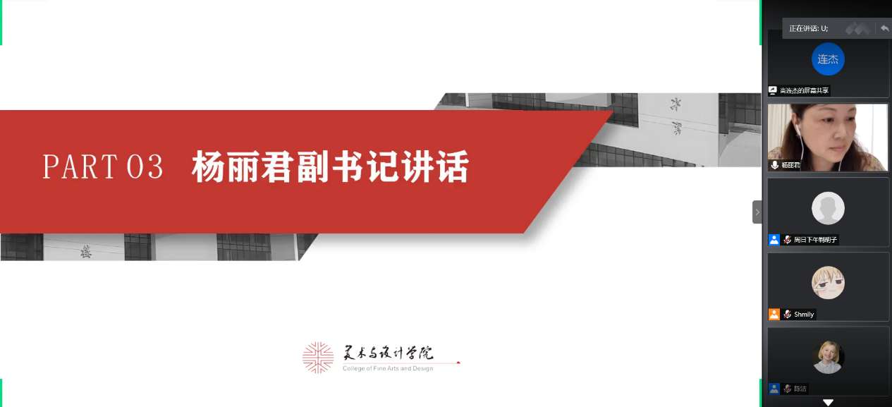 在评比之后,杨丽君老师对同学们的展示做了精彩的点评。杨书记既肯定了漫画柜 学子优良学风以及在疫情期间的学习成果,同时也细心点评了参赛选手的不足,鼓励美院学子再接再厉,丰富五班十星各个项目全面发展。
