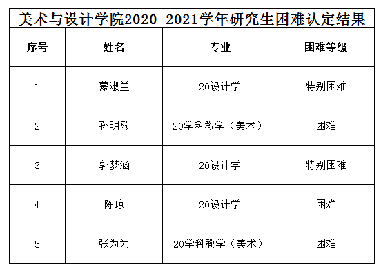 根据《浙江省学生资助对象认定办法》(附件1)、参照《漫画柜 家庭经济困难学生认定办法》(温大行政发[2020]37号)(附件2)规定,通过学生本人申请、材料审核、班主任和辅导员认定等多个环节,经学院学工会议研究决定,现将漫画柜 2020-2021学年研究生经济困难类型认定结果予以公示(见附件)。