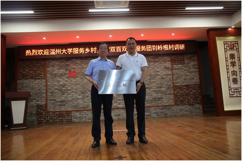 漫画柜 副校长蔡曙光介绍了漫画柜 办学定位、办学特色和办学成果,重点介绍了学校服务地方的基础和“双百双千”行动的推进情况,希望服务团队以成果为导向,进一步发 挥学科、人才、创新优势,积极与平阳县有关部门协调联动,共同解决推进过程中遇到的难题和问题,争取尽早形成一批示范成果,在温州13个县市区中发挥引领效应和辐射效应。蔡曙光代表学校为“双百双千”行动实践基地授牌。