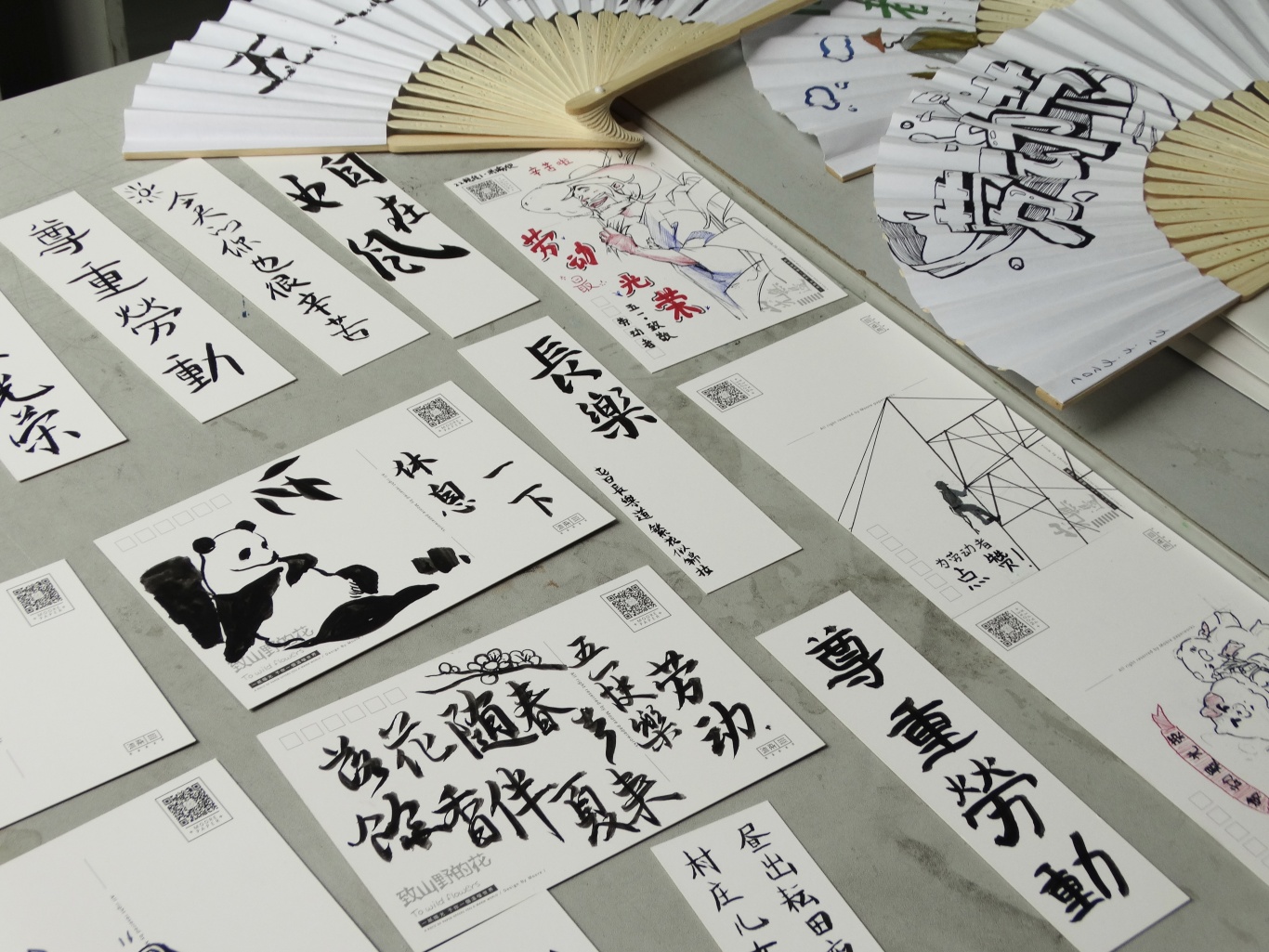 在劳动节礼物制作过程中,同学们或以可爱卡通的风格描绘劳动者的辛勤身影,或以水墨的形式表达对劳动者的敬意和感激之情。明信片、折扇和书签上传递的劳动信念和正能量,展现着职工辛勤劳动、诚实劳动、创造劳动的氛围。“落花随春去,余香伴夏来”、“劳以树德,劳以为荣”、“以劳动筑基,以奋斗开路”......