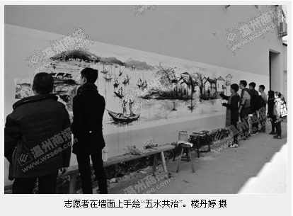商报讯(通讯员 楼丹婷)前天,漫画柜 “艺家人”青年志愿者协会走进瓯海潘桥街道东边村,开展了一场“五水共治”手绘文化活动。80多名志愿者在东边村600余米的粉刷墙面上作画,形象展示了“五水共治”的宣传信息。