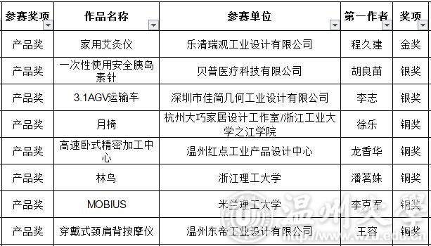 产品奖获奖名单