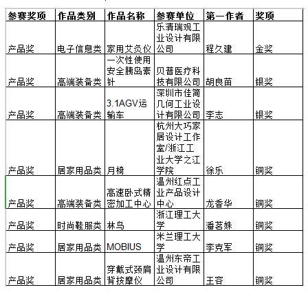 大赛主办方邀请工业设计高端专家,对所有作品进行网络评审和现场会审,最终确定28件产品类作品和38件创意类作品进入复赛,并评选出红蜻蜓鞋业、飘蕾服装等专项奖获奖作品20件。随后,再从复赛入围名单中评选出产品奖、创意奖作品各8件,这16件作品参加最终的“市长杯”决赛路演,角逐出金、银、铜奖。