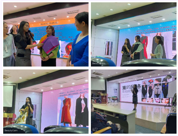 服饰反映着个人的修养和品位,同时也直接地对学生起着潜移默化的榜样作用。服饰礼仪课程从教师着装搭配谈教师如何从认知规律上进行审视,作为教学过程辅助的教师“无声语言”来树立为人师表的形象。金老师在形象礼仪课程中以学员们的穿着为例介绍了服装色彩搭配的原则、穿衣打扮的注意事项和如何根据自己的肤色、量感等特征选择服装。金老师现场为多位女学员进行了皮肤冷暖色的测试,赢得了在场学员们的欢迎。培训在轻松愉快的氛围中结束,不愿离去的部分学员继续与金老师沟通穿衣打扮的心得体会。