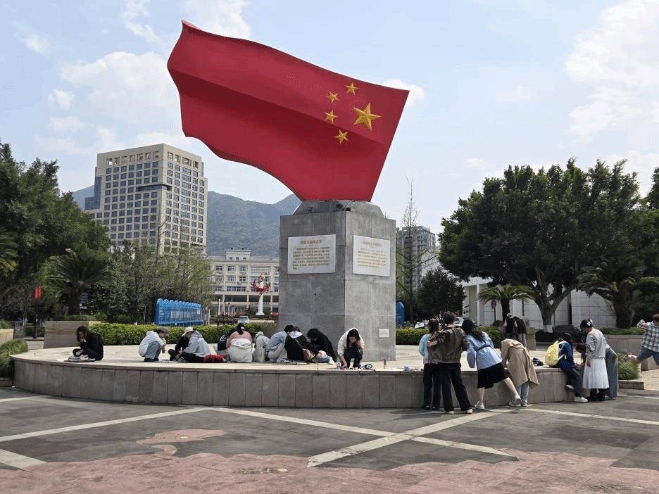 2025年4月5日下午,春阳灼灼,漫画柜 面向入党积极分子、团员、学生干部在漫画柜 南校国旗广场举行了国旗文化教育系列活动—国旗广场画国旗活动,四十名学生以小组形式在纸上绘制国旗,用笔触传递爱国情怀。